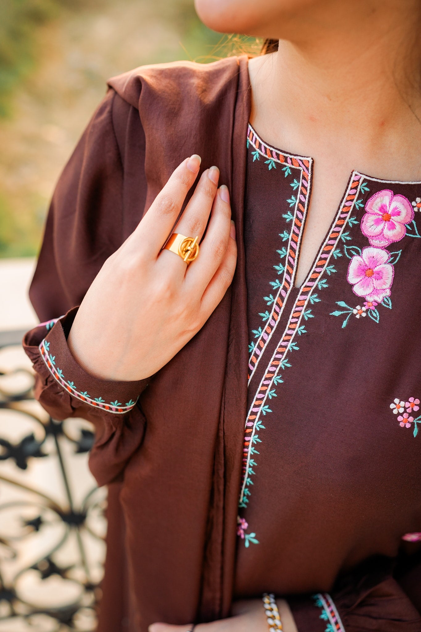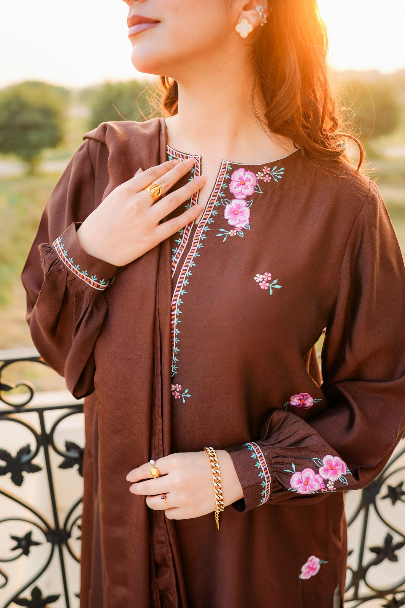 BIA is an essential piece for elegant evenings. This rich Brown outfit is sophisticated and warm, capturing a classic, timeless style. It’s designed for formal or semi-formal events where you want to look powerful yet polished. The careful structure of the fabric ensures a perfect fit.